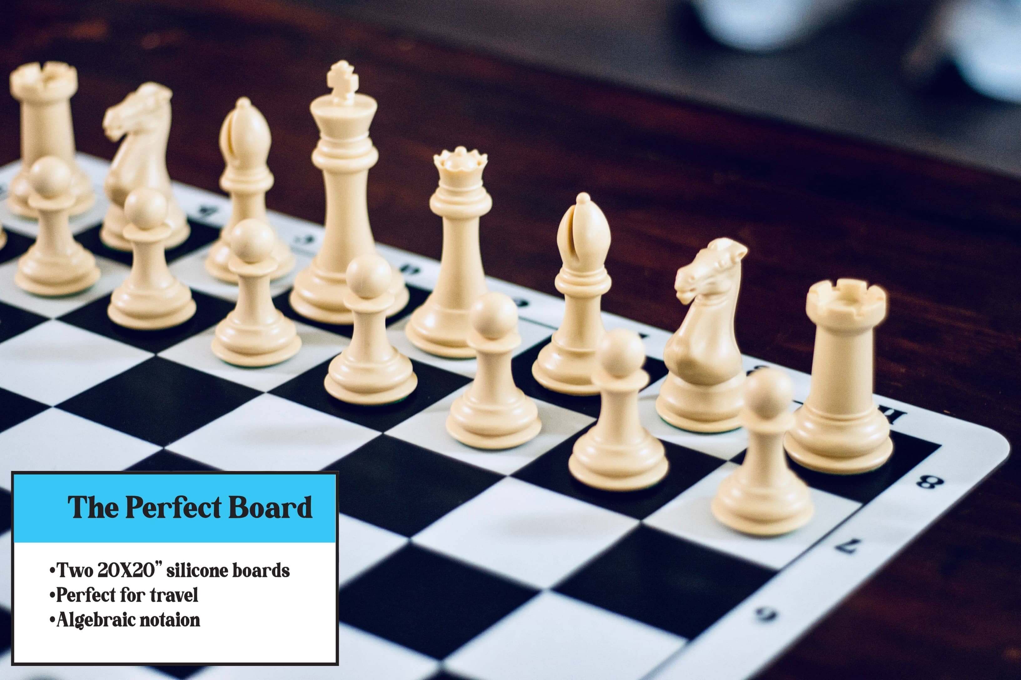 • Our two 20” x 20” silicone chess boards with algebraic notation are ideal for players of all ages.